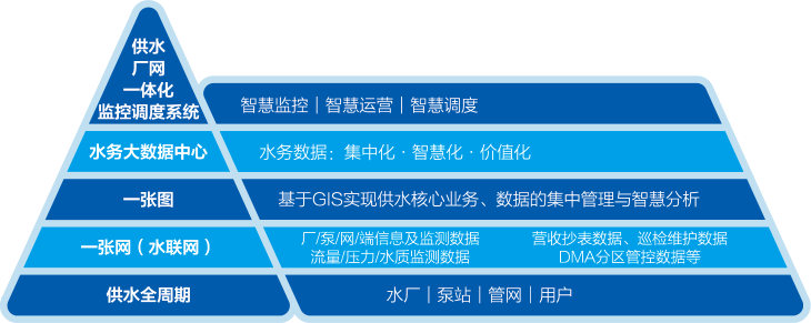 實現供水全鏈集中化監控管理,以先進的技術驅動支撐業務開展。貫穿供水全程,以“一張網一張圖一中心”集中管控,構建先進的廠網一體化監控調度系統。